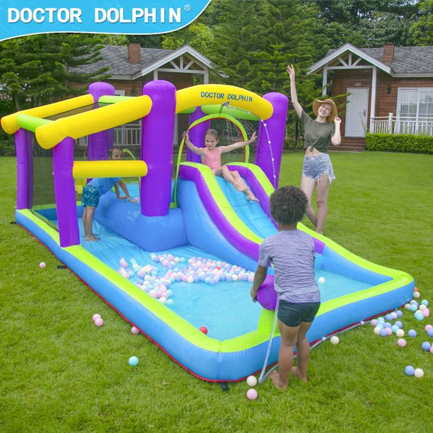 Inflatable Bounce House 5 In 1 Water Slide Jumping Park With Splashing Pool Water Cannon Including Carry Bag Stakes Repair Kit Hose With 450w Air Blower Walmart Com